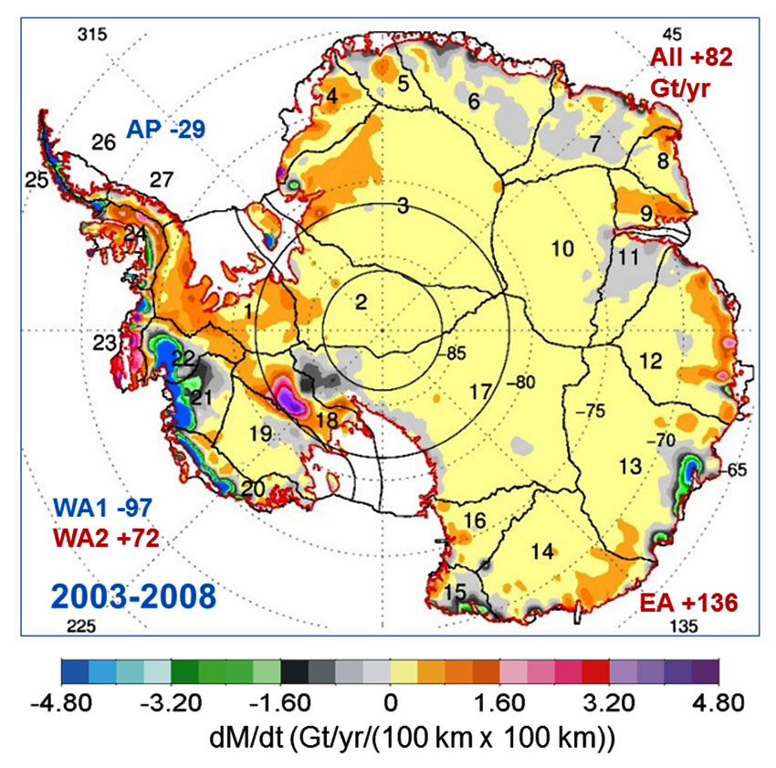 East Antarctica remained steady from 1992 to 2008 at 200 billion