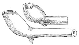 Compare these pipes from the ancient mounds of Ireland with the accompanying picture of an Indian pipe of the Stone Age of New Jersey. ("Smithsonian Rep.," 1875, p. 342.)