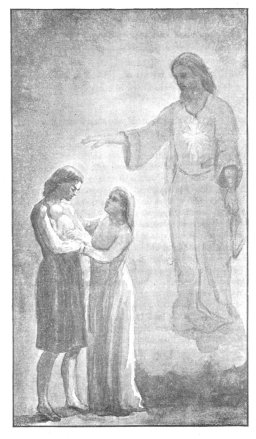 Then a glorious radiance broke over the scene, and the Cross Bearer was beside us as we stood, clasping each other and our child. He whom I had seen by the moonlit fountain, years before, stood by us again. On His breast shone a Cross of Fire, which leapt or fell again in waves of undulating, living Light. He spoke: