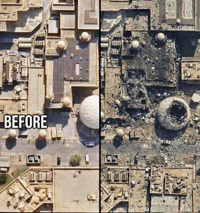 They're tricking outlets like The Tehran Times, which just posted a satellite before/after photo of a bombed-out site - supposedly an American radar installation in Qatar destroyed by Iranian missiles.