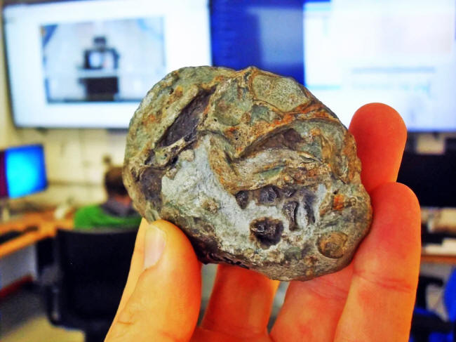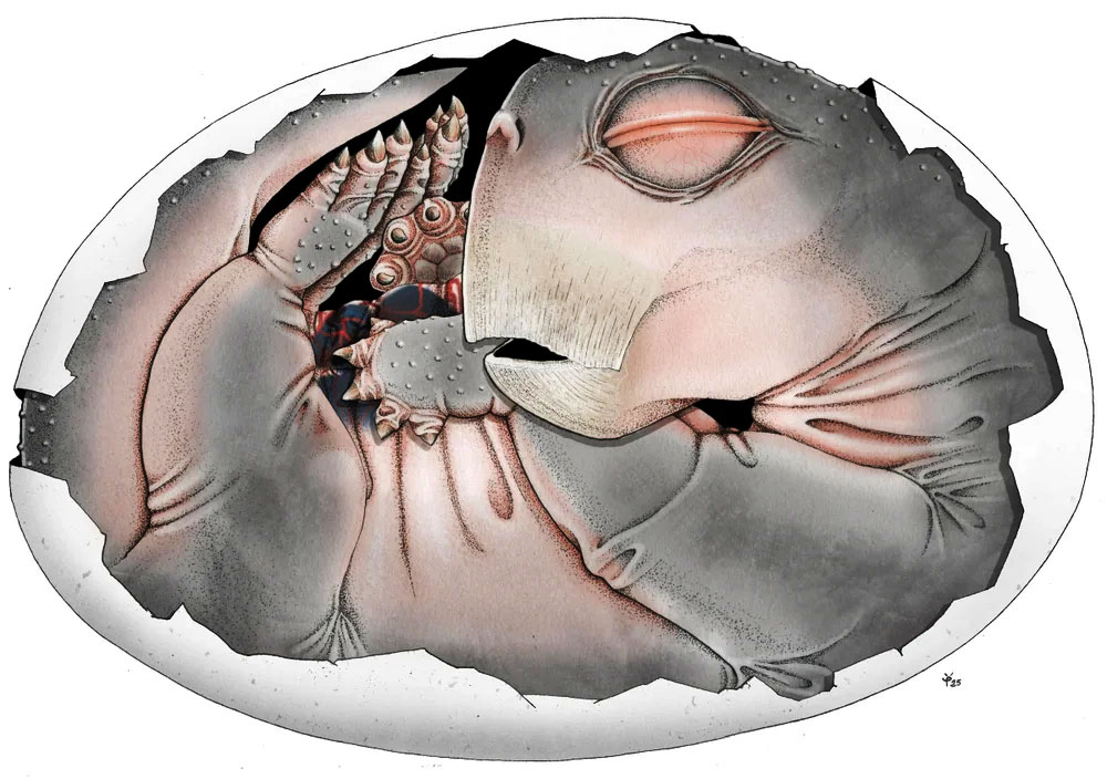 For instance, the dimensions of the rock nodule in which it is preserved are consistent with those of an egg. And the curled posture of the embryo follows an ovoid shape like that of an egg.