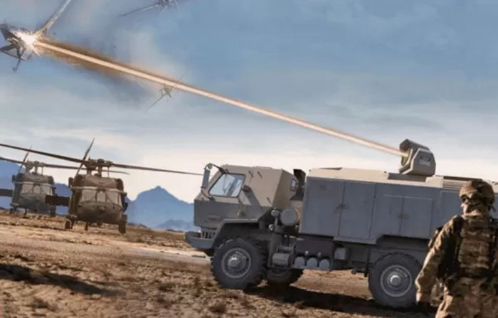 sfoggia un'arma laser montata, che spara un raggio concentrato come parte di una tecnologia avanzata a energia diretta.