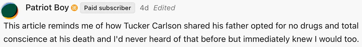 For example, when Scott realized his condition was terminal, he decided that he wanted to spend his remaining time engaging with his followers through his political podcast as much as possible, even when he was on the verge of death.
