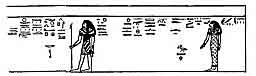 4. A god in human form, seated on a throne, wearing plumes and an uraeus on his head, with "life" in his right hand, and the sceptre in his left; this god is called AFU-ASAR, and he is seated under a canopy which is formed by the body of a monster serpent called ANKH-ARU-TCHEFAU-ANKH-ARU. The text which refers to the first three gods reads: "The Majesty of this great and holy god saith, Grant thou me to come forth on the path by thy spittle(?) and by [thy] throat and let me utter the word which is maat to Ankhit, and let me open thy fold, for I have come to illumine the darkness, and to embrace him that is in Mehen." The text which refers to AFU-ASAR reads: