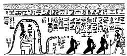 (Left) Afu-Asar under the serpent Mehen. (Right) The beheading of the enemies of Osiris.