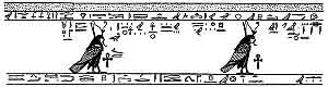 7. Three bearded, human-faced hawks, wearing on their heads the double crown of the South and North; the first is called SA-TATHENEN, the name of the second is wanting, and the third is called MAM (?), or MAAT.