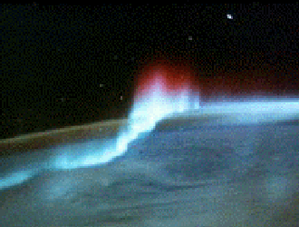 So if a mass of particles with a magnetic field opposite from the Earth's encounters our planet, the mass will be attracted to the Earth's magnetic field. When this happens, charged particles accelerate and spiral down Earth's magnetic field lines, creating a geomagnetic storm. Sometimes the particles collide with gas molecules in the atmosphere and excite them to give off the light known as the aurora. (italics added)