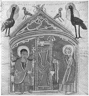The Archangel Gabriel appearing to Zacharias as he ministered at the altar in the Sanctuary