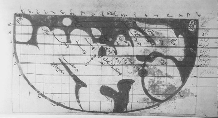 Map of the "Inhabited Quarter", from the Shahid-i Sadiq by Sadiq Isfahani (oriented with South at the top)