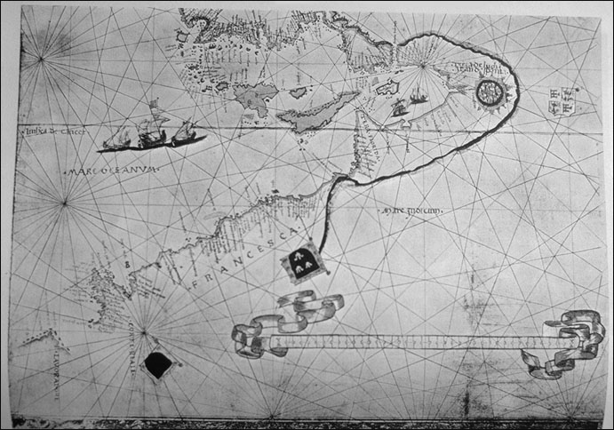 (world map), Vesconte Maggiolo, detail: North America, 1527