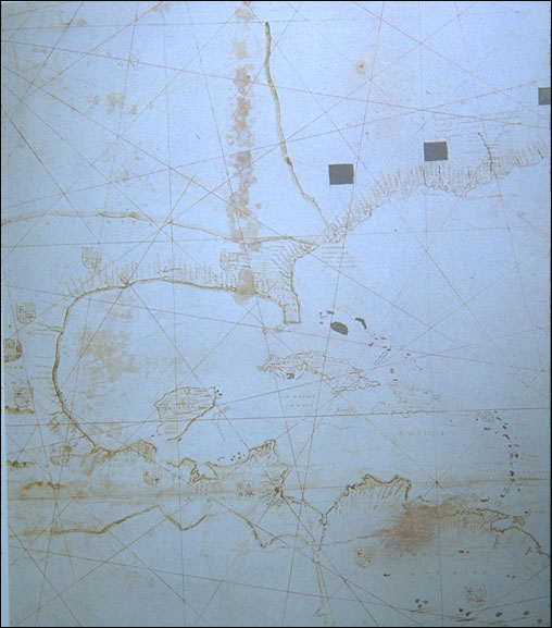 world map, Girolamo de Verrazano, detail: North & South America, 1529