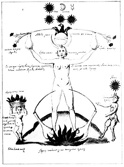 The publication of this manuscript places at the student's disposal the most profound secrets of the Hermetic Art. At first the task of decipherment may seem hopeless and the superficially-minded will be tempted to scoff at the possibility of real knowledge being perpetuated in such unconventional fashion. The scoffer will not realize that one of the purposes of the document is to awaken ridicule and thus preserve more effectually its arcana from the profane. A few sheets (such as those here reproduced) represent the life work of one who has consecrated himself to the task of tearing aside the veil of the World Virgin. Years of research and experimentation, days of incessant labor, nights of prayer and meditation, and at last comes the realization of accomplishment! This is the real story told by the grotesque figures drawn so painstakingly upon the faded, worm-eaten pages. Those who have glimpsed the greater realities of being realize that the fundamental verities of life find at best only imperfect expression through physical symbols. Only those who have passed through the travail of spiritual birth can adequately comprehend and properly reverence the pathetic efforts to portray for others that knowledge necessarily locked within the heart of the one who knows.