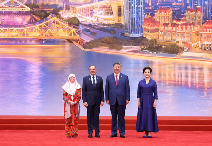 Prime Minister Anwar Ibrahim and his wife at the Meijiang Convention and Exhibition Center in Tianjin,
