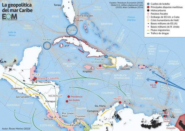 Ese amplio espacio marítimo es primordial para Estados Unidos porque se considera tanto una "buffer zone" (zona de amortiguación) como una zona de proyección. Eso la hace un objetivo frecuente en términos de injerencia e intervenciones de todo tipo, incluso militares, convirtiéndola en la zona más invadida por Estados Unidos en su historia como nación.