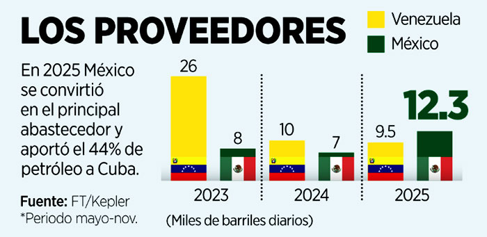El acoso sobre Venezuela había hecho mermar en demasía el apoyo energético a Cuba. Es más, durante 2025, México fue el mayor proveedor de petróleo a la isla.