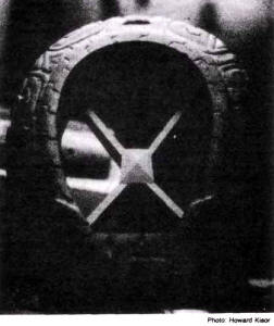 Ray Stoner, working with shamans among the Central American and North American Indians, has gone a step further and is searching the museums and ruins for potential pieces of the grid "power system" he believes was once in operation around the world and centered in the pyramids. His is potentially the most politically revolutionary theory since so many key "artifacts" (such as the unusual stone yoke shown in illustration # 13) are found in the museums and collections of the very wealthy. Illustration #13 Archaeologists hypothesize that "stone yokes" such as this one on display at Chicago's Field Museum were worn by Mayan athletes during their strenuous and violently competitive games. These yokes measure approximately 24" by 18" and are about 4" in width. They appear to be carved from solid granite and weigh perhaps several hundred pounds. Ray Stoner has noticed a resemblance to magnets, even down to carvings of heads facing opposite directions on the two poles. In our opinion, the object is incomplete, perhaps requiring some sort of attractive base plate.