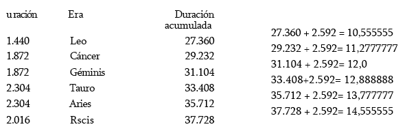 El ciclo zodiacal para calcular el final, entonces, es el siguiente: