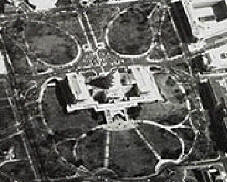 U.S. Congress building, surrounding roads, trees, and structures clearly