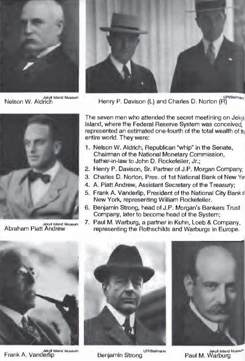 Henceforth, the cartel would operate as a central bank. And even that was to be but a generic expression. For purposes of public relations and legislation, they would devise a name that would avoid the word bank altogether and which would conjure the image of the federal government itself.