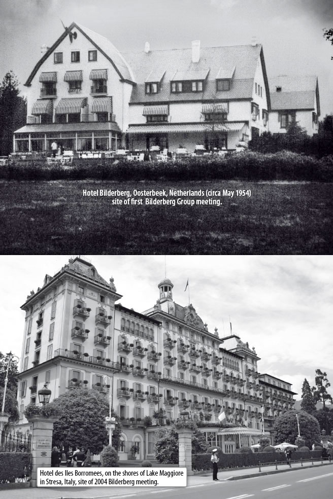 Bilderberg, el ojo que todo lo ve, el Gobierno Mundial a la sombra, decide en una reunión anual completamente secreta cómo deben llevarse a cabo sus diabólicos proyectos. Cuando se celebran estas reuniones, inevitablemente les siguen la guerra, el hambre, la pobreza, el derrocamiento de los gobiernos, y abruptos y sorprendentes cambios políticos, sociales y monetarios. Tal régimen depende absolutamente de la capacidad del Club para mantener la información silenciada y reprimida. Ése es su talón de Aquiles.