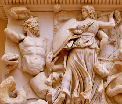en la portada de este libro (imagen arriba). 49 Se trata del Tinkuy andino anteriormente citado (nota 118), petroglifos de mitologías mesopotámicas o griegas, como se muestra en esta tabla, que muestra la lucha de Hécate con "demonios" serpientes, la lejana memoria de un combate épico entre hombres y mujeres pueden encontrarse en todas partes del mundo! En el corazón de las leyendas griegas, el rapto de Helena de Esparta (símbolo de la luna), hija del dios de los dioses, evoca claramente la apropiación del culto de la Diosa Madre y su influencia hipócrita por una horda de individuos del sexo masculino. Encontramos esta misma ideología entre los gnósticos, que equiparan a Sophia (Sabiduría en griego) a la Diosa Madre que dio origen al proceso de creación original y que fue encarcelada por el Demiurgo y "violada" por sus gobernantes, es decir "ángeles malos, serpentinos" que la guardan prisionera en el mundo...