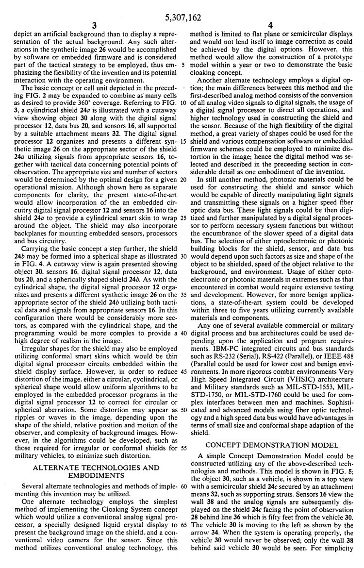 5,307,162 entitled “Cloaking Using Optoelectronically Controlled
