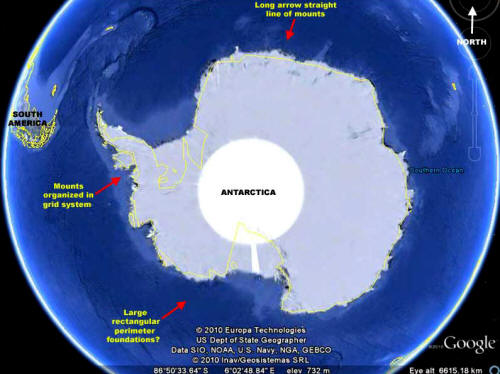 The above 2nd image demonstrates the location of the below next three evidence sites just off the coast of the ice covered Antarctica continent.
