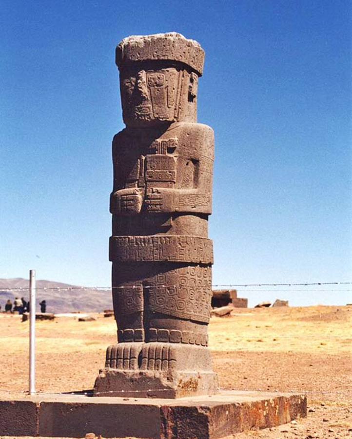 Statues from Tiahuanaco in Bolivia, and archaeological sites in