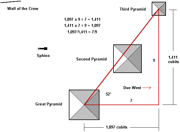 Although all of the pyramids and temples on the Giza Plateau are very precisely aligned with the cardinal directions, the Wall of the Crow is aligned five degrees north of due east and five degrees south of due west, in alignment with the line of ancient sites as it crosses over the Giza Plateau.