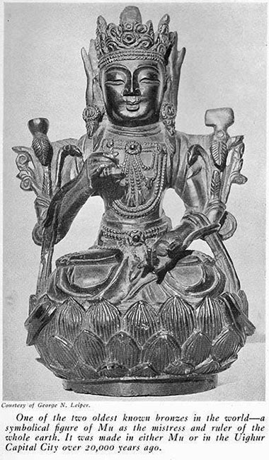 During the past few years, I have been singularly fortunate in finding two that are at least intimately connected with Mu. Both are symbolic figures in bronze.