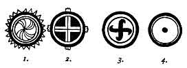Line 1. Figs. 1 to 5. All these symbols are pictures of the Sun, and are universal, that is, they are found among the writings of all ancient peoples.