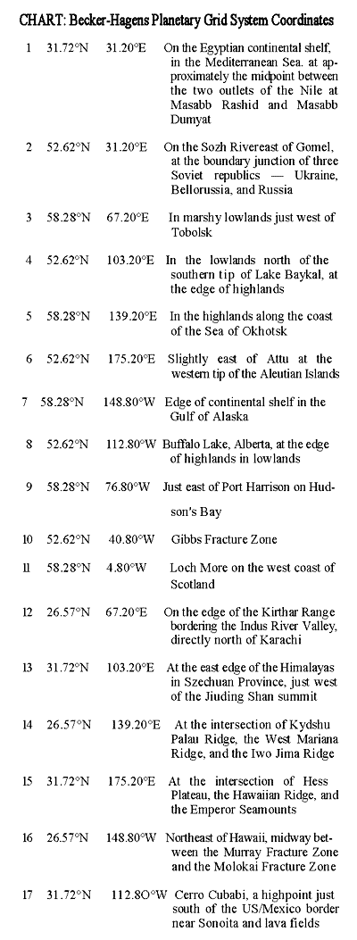Assisi, home of St. Francis (43). We also hold that a major reason why Megalithic groups were so interested in astronomy and the precise calculation of solar and lunar phases was that within these calculations rested the predicted "pulses" of energy through the grid at different times of the year. Captain Bruce Cathie, an airline pilot and prolific grid researcher from New Zealand, has theorized for years regarding the grid's pulsing harmonic pattern and how it might relate to UFO and "sky light" phenomena. UVG is applicable to this research in a curious way.