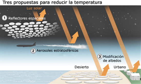 Muchos científicos creen que a través de la pulverización en aerosol de ciertas sustancias en la estratosfera o la troposfera, es posible reflejar más luz solar de vuelta al espacio, lo que ayudaría a enfriar el planeta.