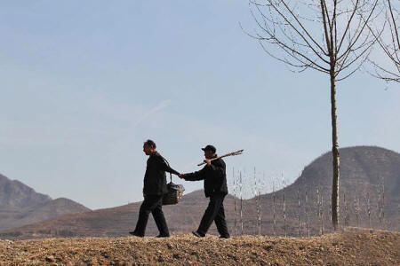 Haixia es el encargado de cavar agujeros en el suelo para plantar