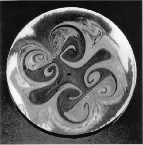 For comparison, here is an image of liquid being subjected to vibrations (from Hans Jenny’s book “Cymatics, Volume 1”, page 58):