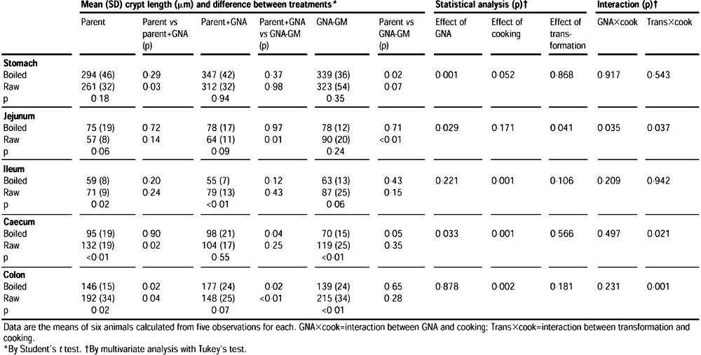 El efecto promotor del crecimiento de las patatas crudas GNA-GM en el yeyuno, evidente como hiperplasia críptica, se debe