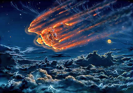 Artist impression of Galileo burning up when falling into the Jovian atmosphere. Credit: David A Hardy