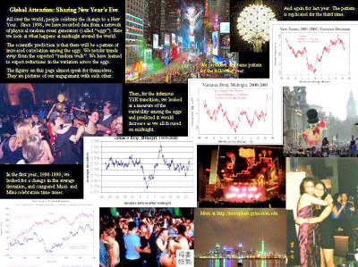 Why should there be any effect of a world-wide New Year’s celebration, or the beginning of a war, or a billion people watching a funeral ceremony, on REG devices placed in far corners of the world? Although it’s only a metaphor, it may be helpful to envision a "consciousness field".