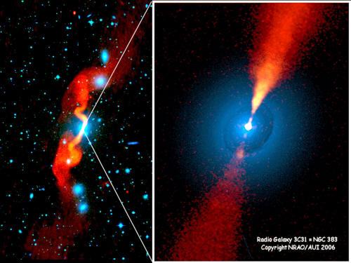 Fig. 3. The galaxy 3C31, depicted on the right, appears as a mere speck within the energetic radio signals that surround it (left).