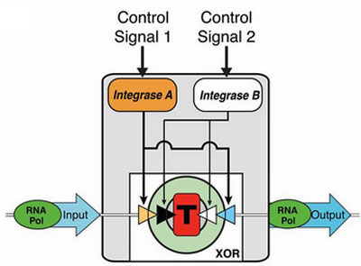 By combining multiple transcriptors, the Stanford researchers have created a full suite of Boolean Integrase Logic (BIL) gates (below video) - the biological equivalent of AND, NAND, OR, XOR, NOR, and XNOR logic gates:
