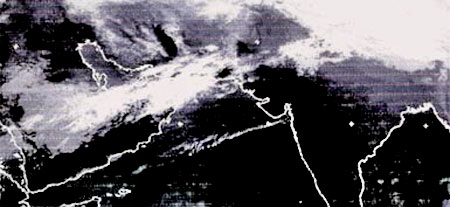 Image 3: Air flow and cloud movement from West Asia to Western India and Delhi.