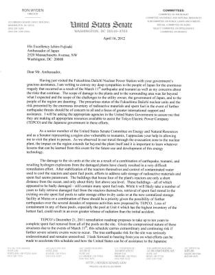 Wyden visited Fukushima on April 6, 2012 while on a Congressional