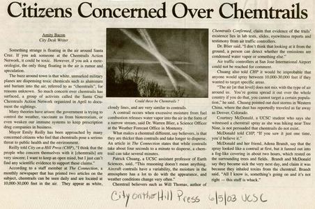 Una cita del artículo sobre Estelas Químicas en el perióldico Las Vegas