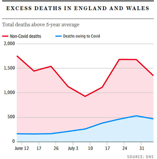 In all, non-COVID deaths are now more than three times that of COVID-related