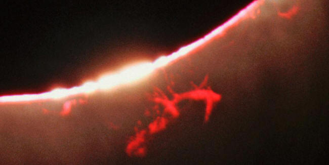 Here above, an image of some pink prominences that can be seen with the naked eye only during a total solar eclipse.