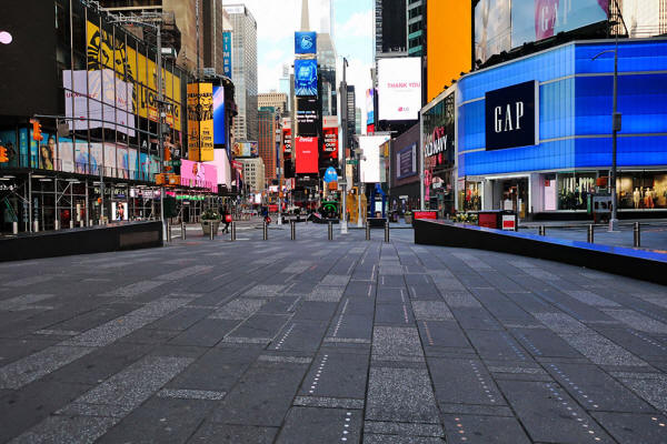 Times Square è quasi senza pedoni durante la pandemia di coronavirus a New York City, 21 aprile 2020. Ted Shaffrey | AP