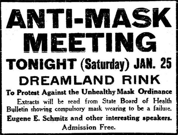 la Anti-Mask League of San Francisco para el 25 de enero de 1919