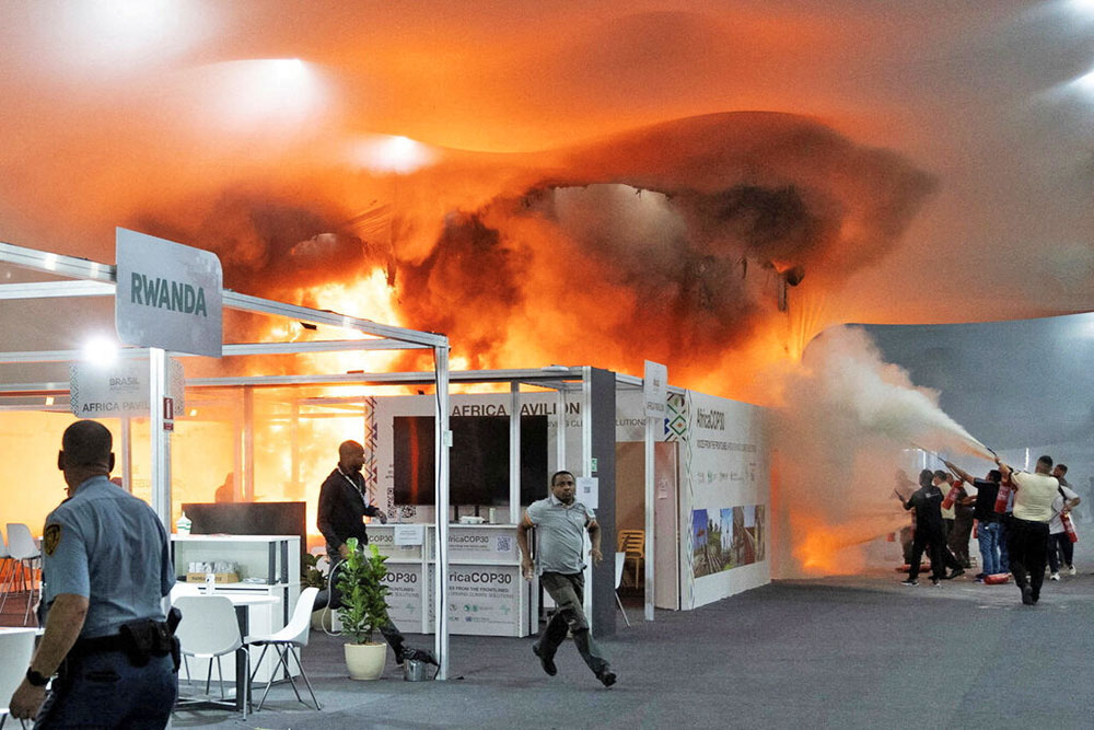 A fire broke out at the Pavilion of Countries at COP30. Credit: Douglas Pingituro/Reuters
