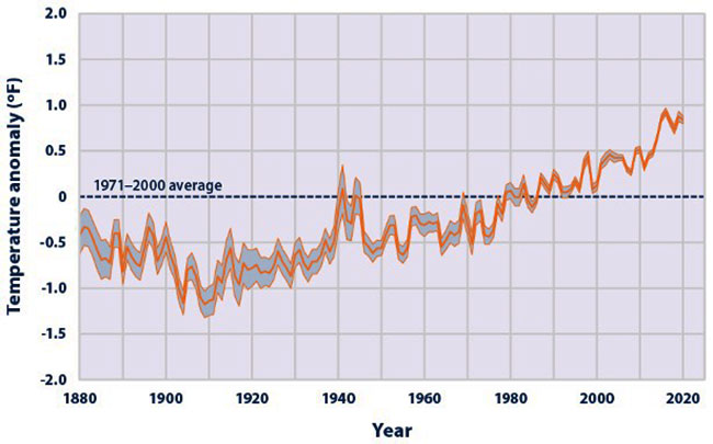 Figure 1. Increase of ocean surface waters from 1880 to 2020. (Graph credit EPA)