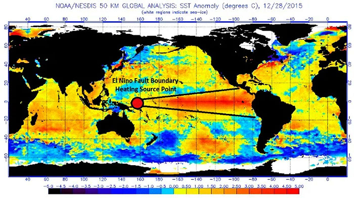 Figure 5. El Niño emit tremendous amounts of heat into the central part of the Pacific Ocean. Image credit NOAA